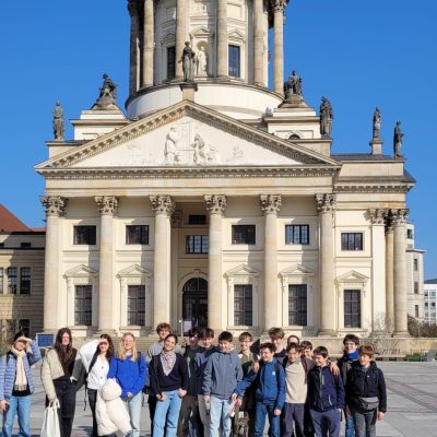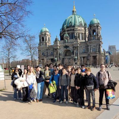Devant le Reichstag à Berlin, les élèves de 4ème et de 3ème de Saint-Vincent ainsi que leurs correspondants posent en groupe lors d’une balade-découverte de la ville. A l’occasion de notre jumelage avec le Paulus-Praetorius Gymnasium de Bernau bei Berlin, les jeunes rennais ont passé une semaine chez leur correspondant. Un séjour toujours marquant et apprécié des élèves !